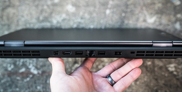 Mặt sau của Legion Y7000 chứa các cổng còn lại như cổng HDMI 2.0, cổng Ethernet Ethernet, jack cắm nguồn, một cổng USB Type-C , một Mini DisplayPort 1.4, một cổng USB 3.1 và khe khóa Kensington .