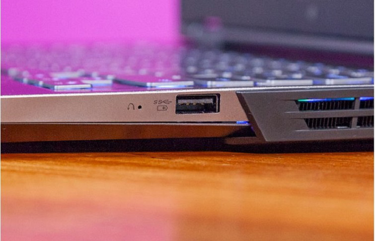 Legion Y740 vẫn giữ nguyên phong cách thiết kế đơn giản, không hề hầm hố của thế hệ trước. Đa phần các cổng kết nối chính được chuyển hết về phía sau gồm 1 Mini Displayport, 1 HDMI, 1 cổng mạng dây RJ45, 2 cổng USB 3.1 Gen 1, giắc cắm sạc và khe khóa Kensington.