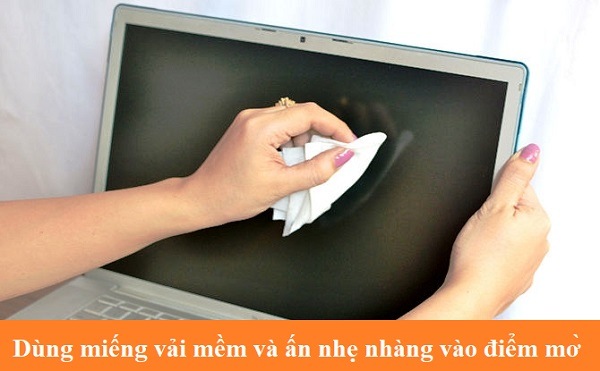 Bước 2 : Dùng miếng vải mềm, khô ráo và dùng tay nhẹ nhàng ấn vào các điểm mờ này. Thao tác phải thật nhẹ để tránh làm lan ra những vị trí khác vì như vậy có thể làm xuất hiện thêm nhiều đốm.