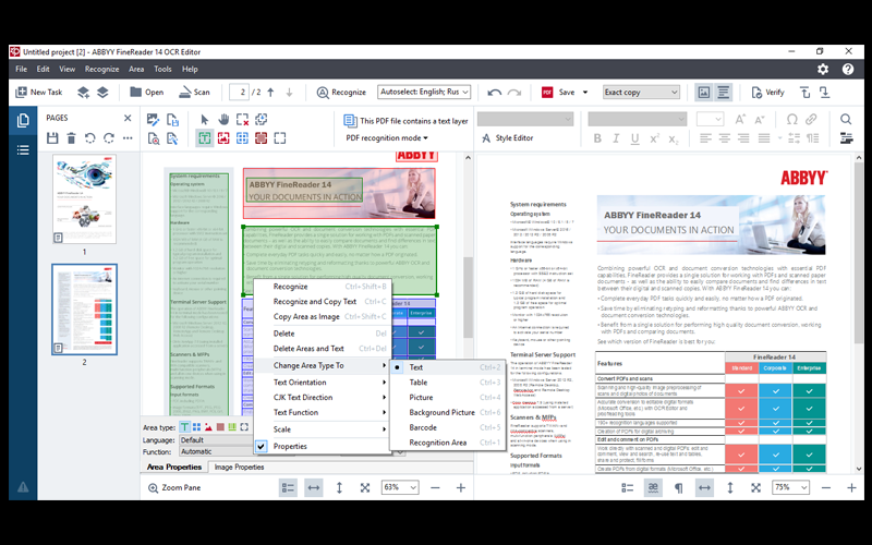 Tính năng của phần mềm ABBYY FineReader