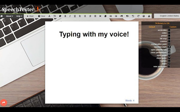 Tiếng Việt. Tiếp theo, bạn mở một tập tin văn bản bất kỳ nào đó, khi bàn phím xuất hiện, thì người dùng chỉ cần nhấn im lên biểu tượng hình dấu phẩy và chạm vào hình Trái Đất. Cuối cùng, bạn hãy nhấn vào biểu tượng icon micro ở trên bàn phím nhập văn bản bằng giọng nói ở trên PC và bắt đầu nói để nhập liệu