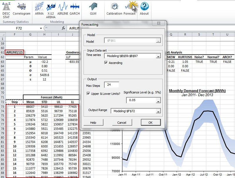 - Dự báo: Với NumXL, bạn có thể dễ dàng tạo dự báo dựa trên dữ liệu lịch sử. Nó cung cấp các phương pháp dự báo khác nhau, chẳng hạn như ARIMA, làm mịn hàm mũ và hồi quy, để giúp bạn dự đoán chính xác các giá trị trong tương lai.