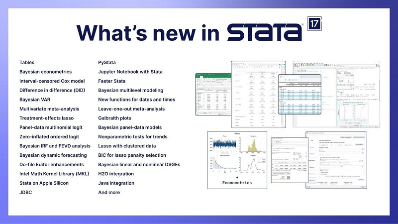 Stata 17 là phần mềm thống kê mang đến một loạt các tính năng và cải tiến mới để trao quyền cho các nhà phân tích và nghiên cứu dữ liệu. Trong bài viết này, chúng ta sẽ khám phá những bổ sung thú vị cho Stata 17 ngay bên dưới nhé.