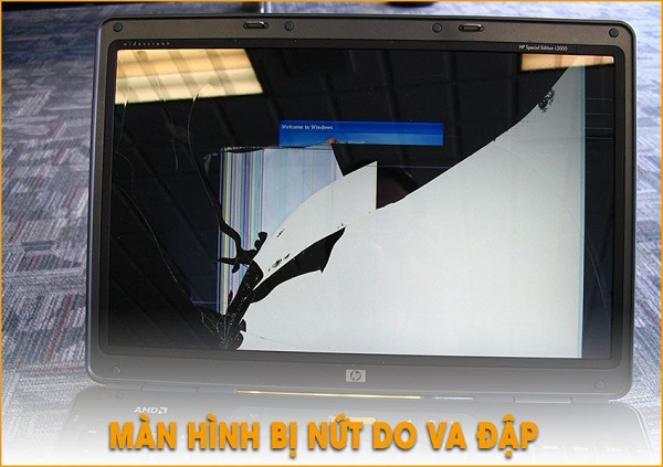 Lỗi này thường gặp phải khi bạn vô tình bất cẩn làm rơi chiếc máy xuống dưới đất mà màn hình máy đập trực tiếp vào sàn hoặc có những vật cứng hoặc sắc nhọn mà bạn sơ ý đụng phải dẫn đến màn hình bị vỡ một mảng lớn. Gặp phải vấn đề này thì nên đến trung tâm sửa chữa laptop để được xử lý tạm thời hoặc phải thay một màn hình mới.