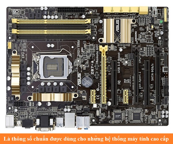Là dòng bo mạch chủ ATX được sử dụng phổ biến nhất và xuất hiện ở trong hầu hết những thiết bị máy tính hiện nay trên thế giới. Và ATX là thông số chuẩn bo mạch chủ và được phát triển có chọn lọc dựa trên nền những chuẩn cũ với các thay đổi thiết kế. Ngoài ra ATX cũng bao gồm những tính năng quản lý điện năng thông minh, sự thay đổi nút khởi động và là sự tập hợp các cổng kết nối vào/ra bao gồm những khe cắm mở rộng ở phía dưới và cụm cổng vào/ra ở phía trên.