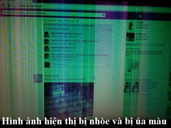 Lúc bật máy tính lên thì những hình ảnh hiển thị bị nhòe và màn hình bị úa màu