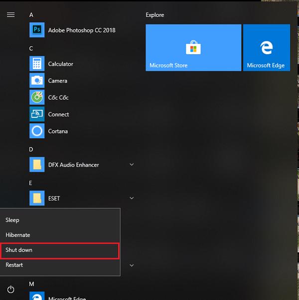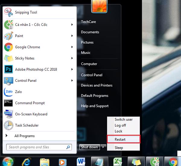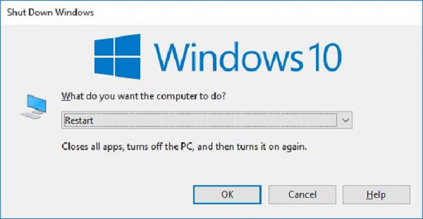 Bạn có thể sử dụng nhấn tổ hợp phím để khởi động lại cho máy tính. Với hệ điều hành windows 10, windows 8 thì bạn nhấn vào tổ hợp phím Alt + F4 rồi xuất hiện bảng tùy chọn khởi động lại hoặc là tắt máy tính. Sử dụng mũi tên lên xuống để tìm đến lựa chọn Restart. Với hệ điều hành windows 7 các bạn có thể nhấn vào phím windows chọn vào mũi tên phải và chọn tiếp mũi tên lên đến phần Restart và nhấn Enter để khởi động lại máy tính. Một cách đơn giản hơn đó là sử dụng thanh menu Start ở góc dưới bên trái đối với hệ điều hành win 7, win 10 và ở góc dưới bên phải đối với hệ điều hành win 8